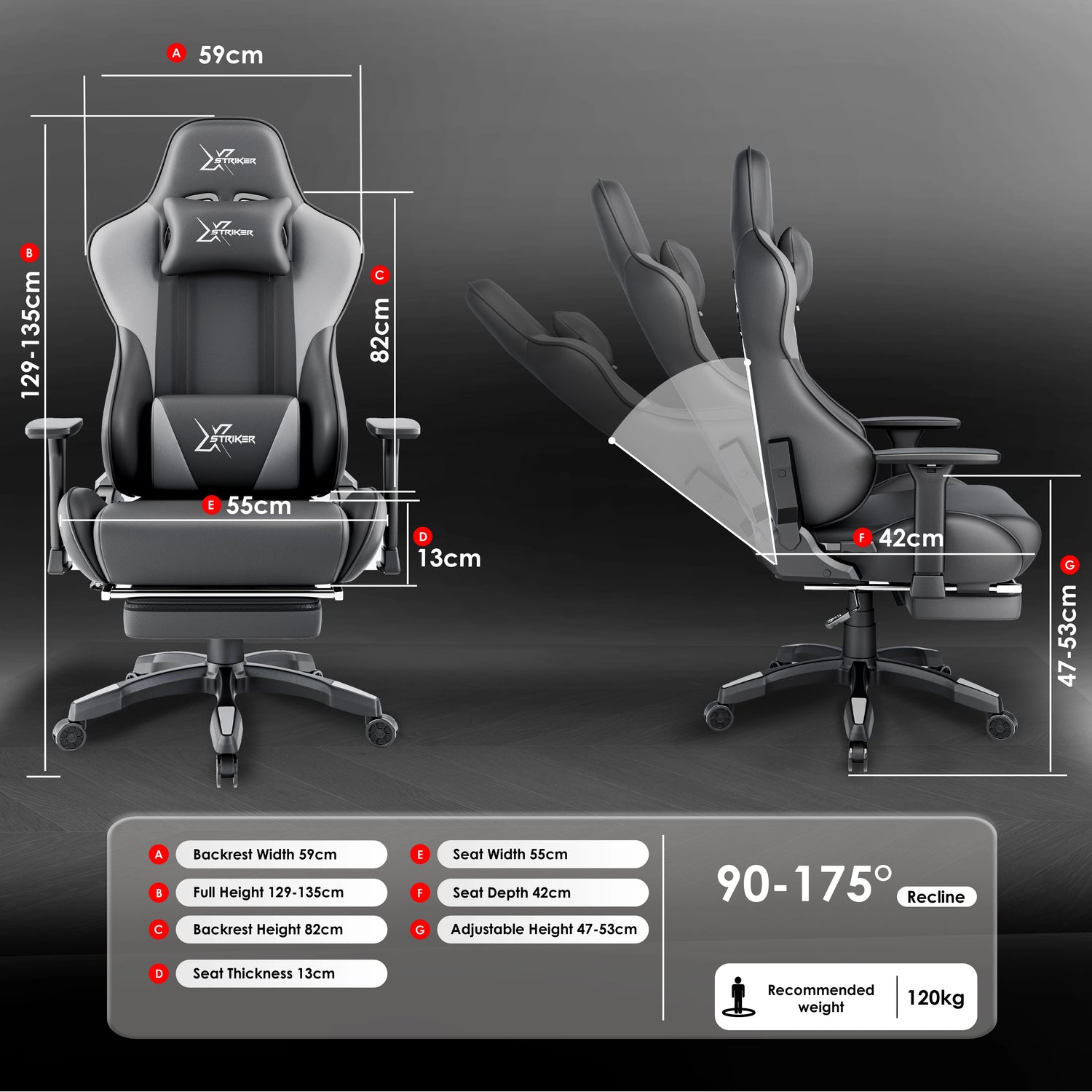Stable 120kg Weight Support: This gaming chair with footrest offers full support up to 120kg, so everyone can game, work or relax without any worry.