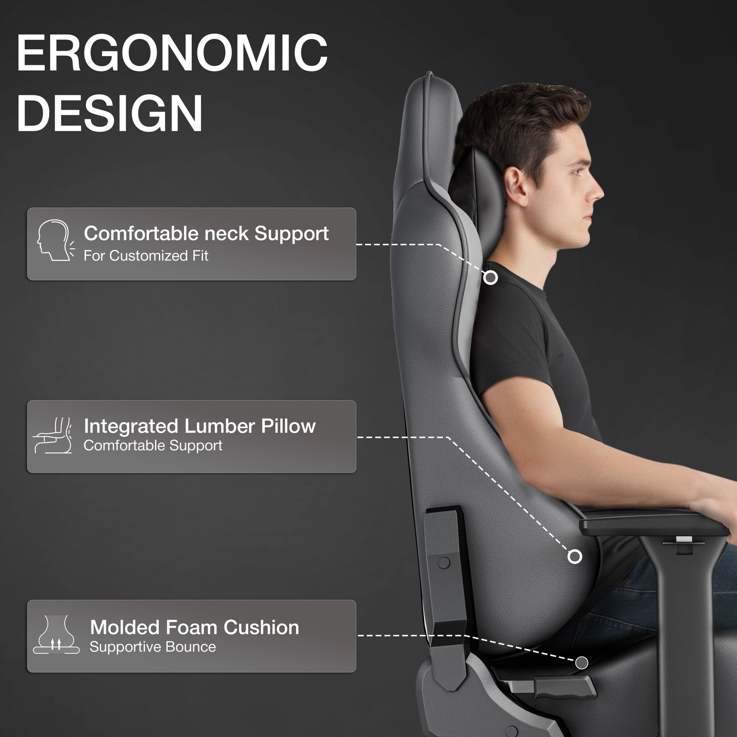 13cm Thick Foam Cushioning: Comes with a high-rebound moulded foam seat that keeps you supported, so you can sit longer without any discomfort.