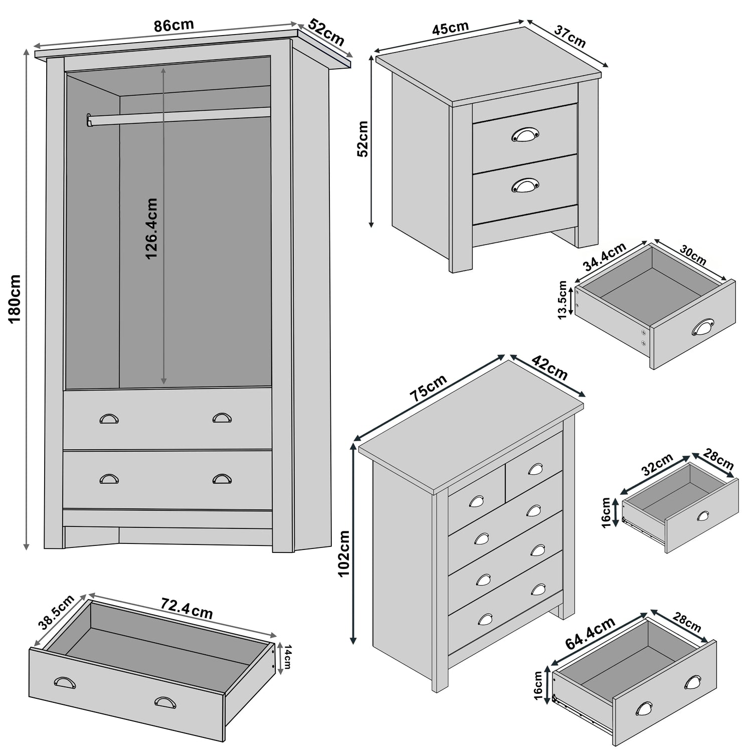 Size: Wardrobe: H 180 x W 79 x D 52 Cm, 3 Over 2 Drawers: H 95 x W 79 x D 39.5 Cm