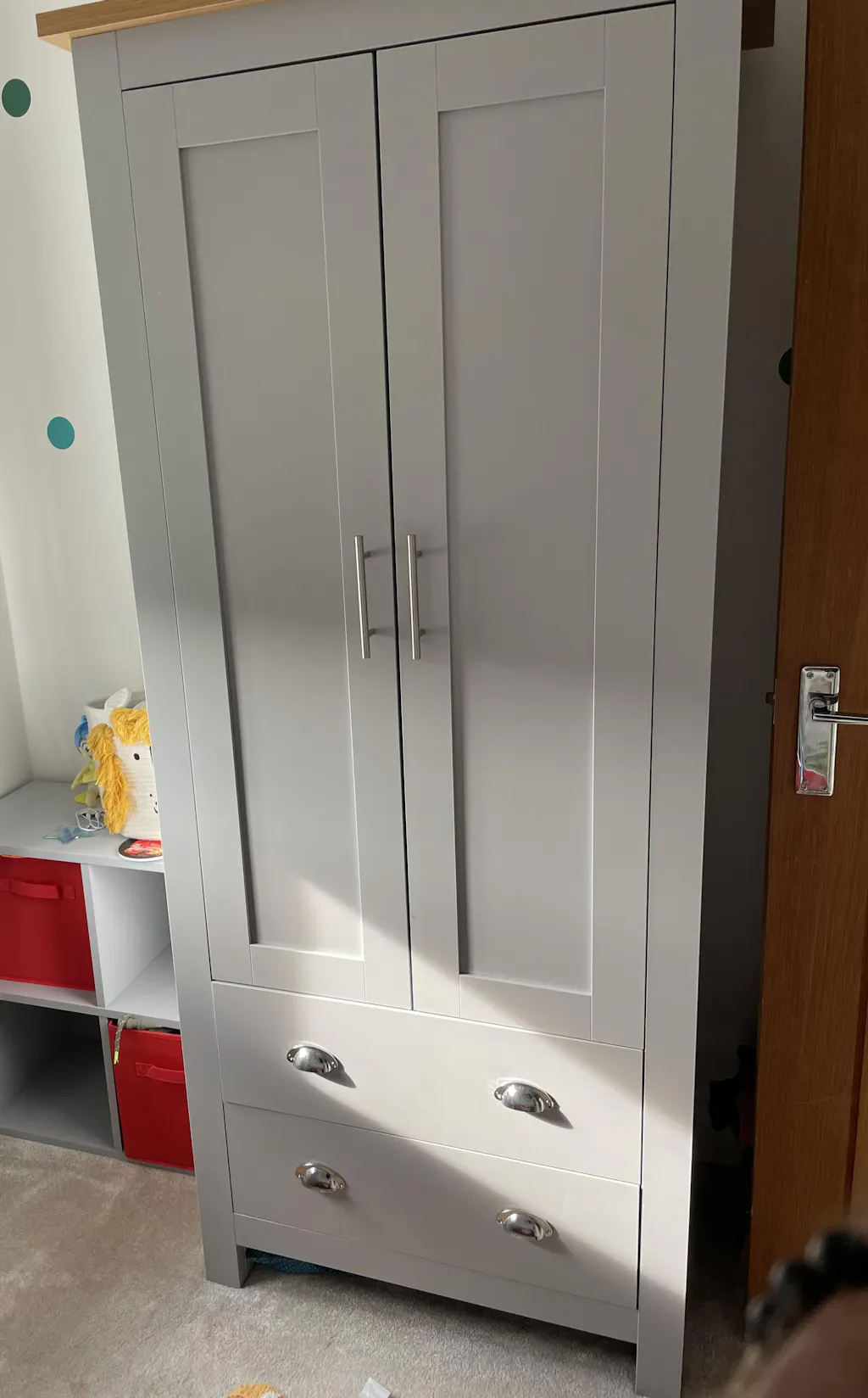 ![[Grey] shaker style double door wardrobe with bottom drawers featuring smooth finish, styled in neutral bedroom](http://dreamhomestore.co.uk/cdn/shop/files/grey-shaker-double-wardrobe-straight-on-view.webp?v=1774356380&width=1214)