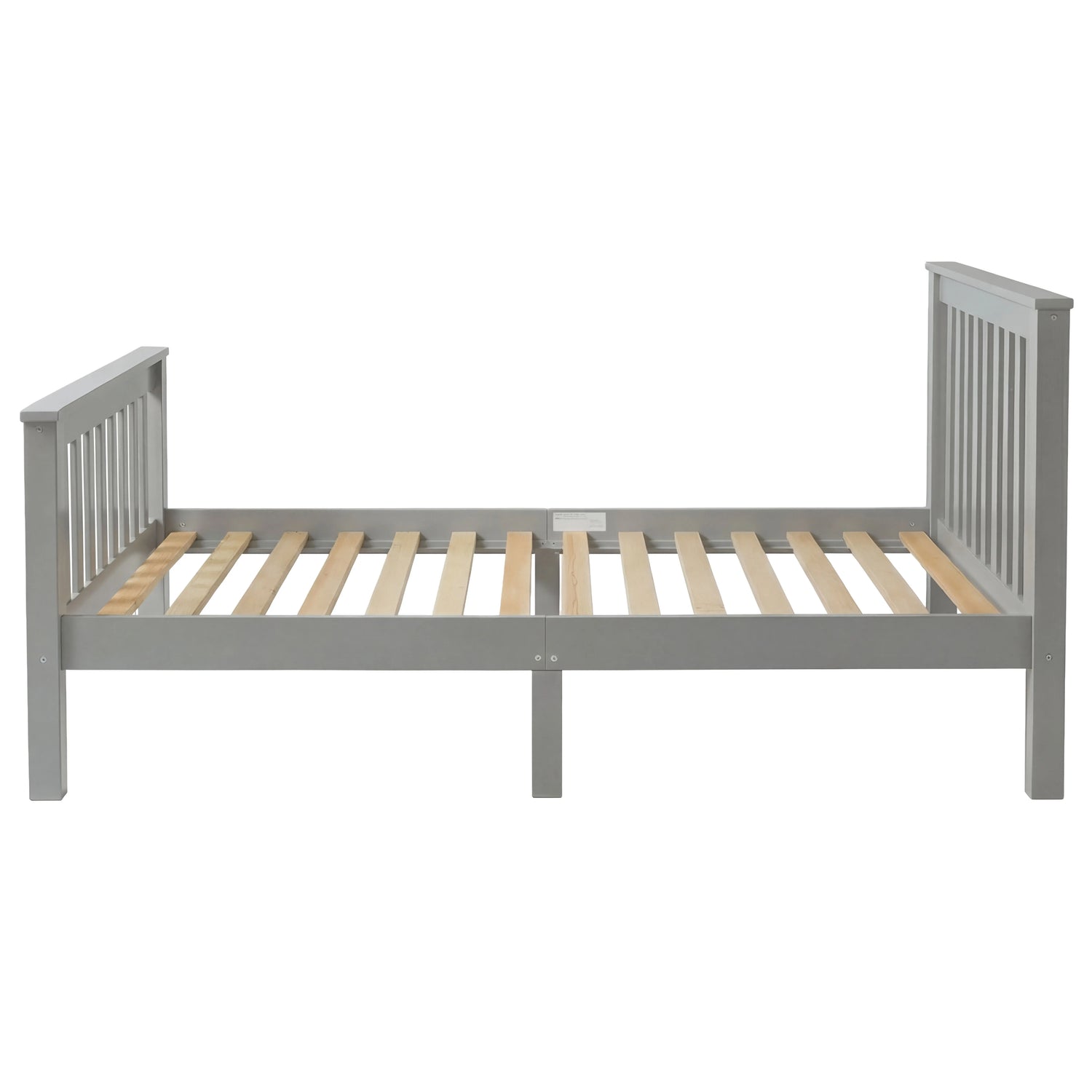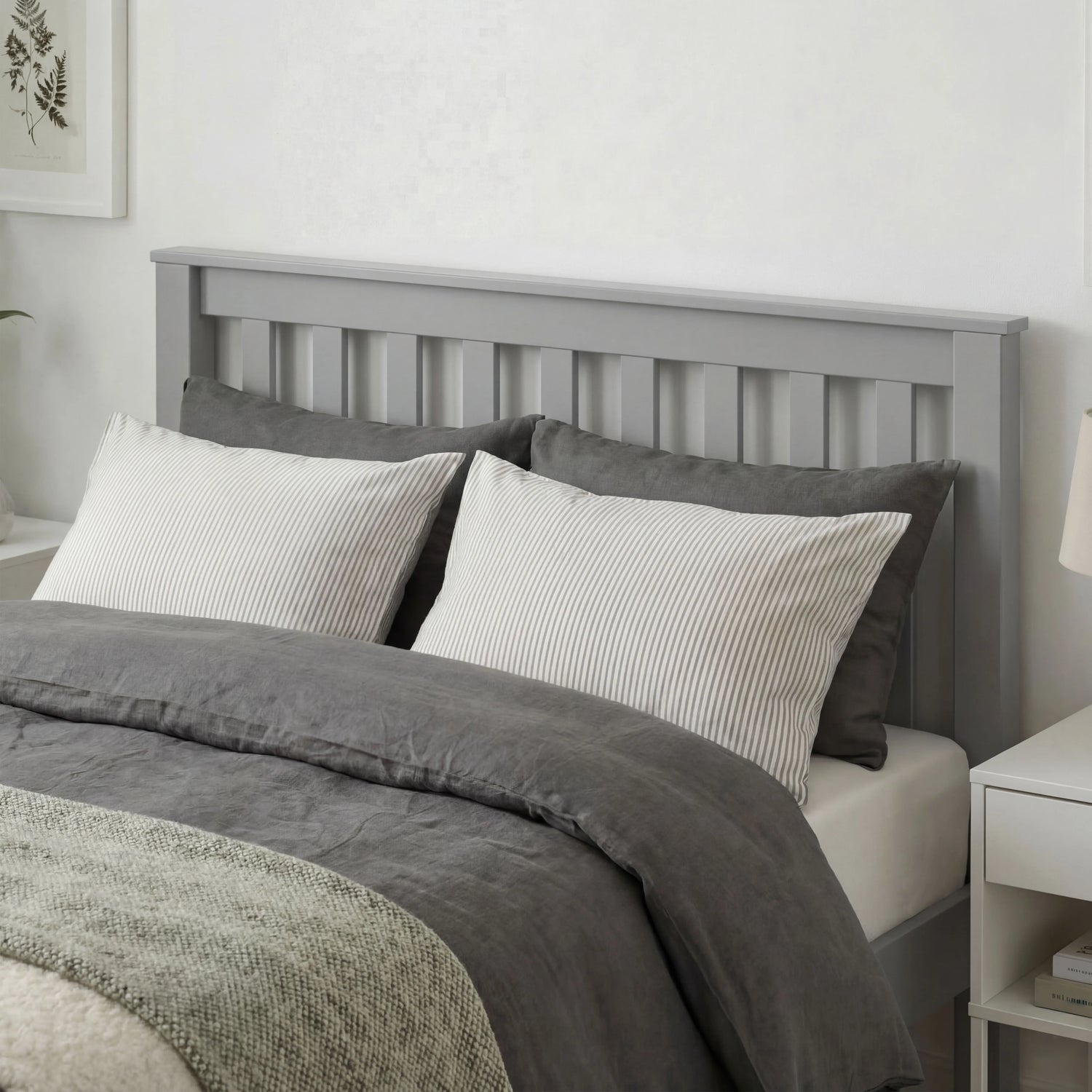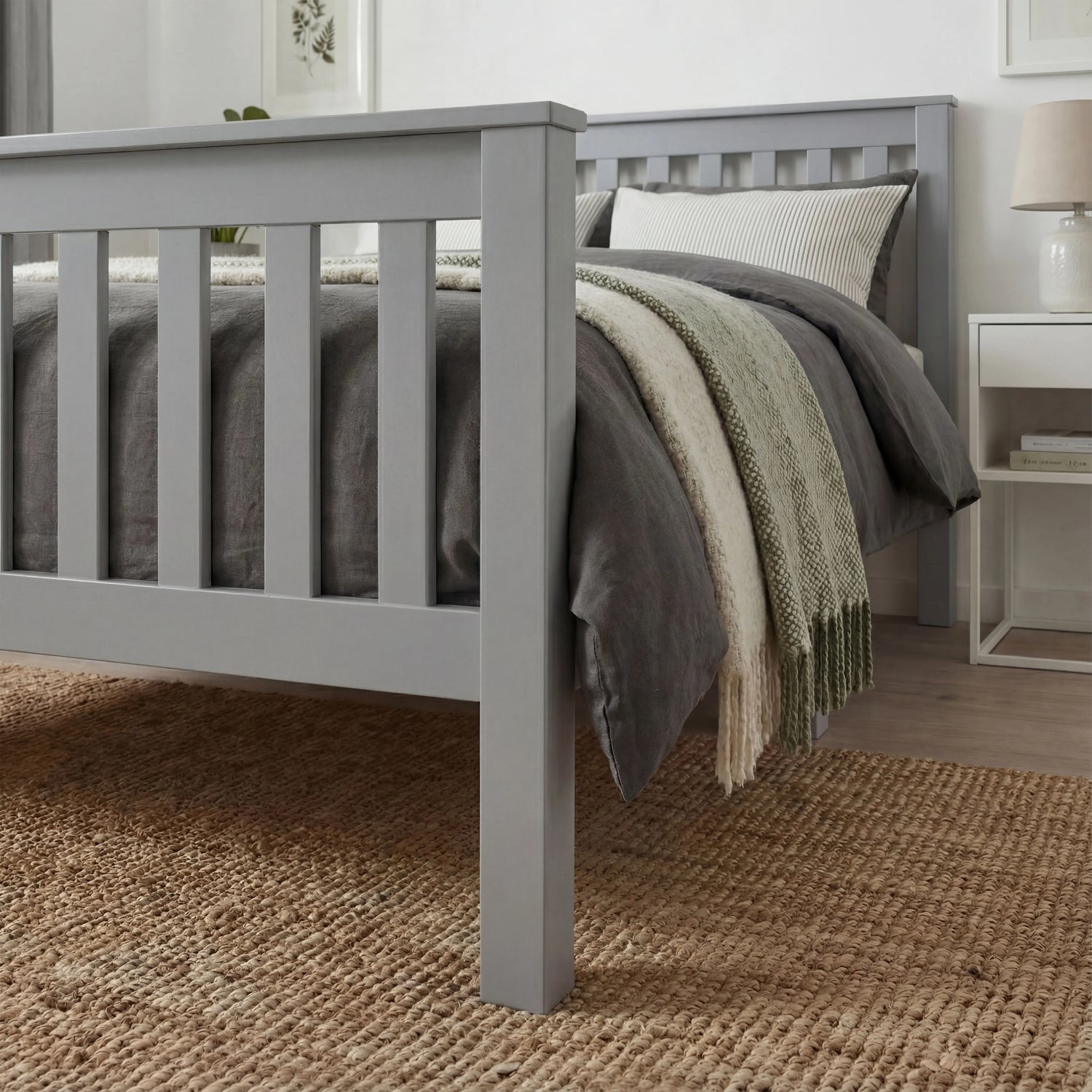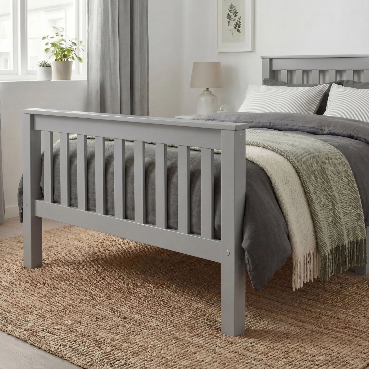 Featuring a simple silhouette and thoughtful detailing, this wooden single bed combines a classic slatted headboard and footboard in a modern frame. Built from solid wood with a smooth finish, it is designed for everyday use without visual heaviness. Its slatted base provides dependable mattress support, while the open area beneath the bed improves airflow and simplifies cleaning. You can select from a white or grey bed frame to easily match your interior