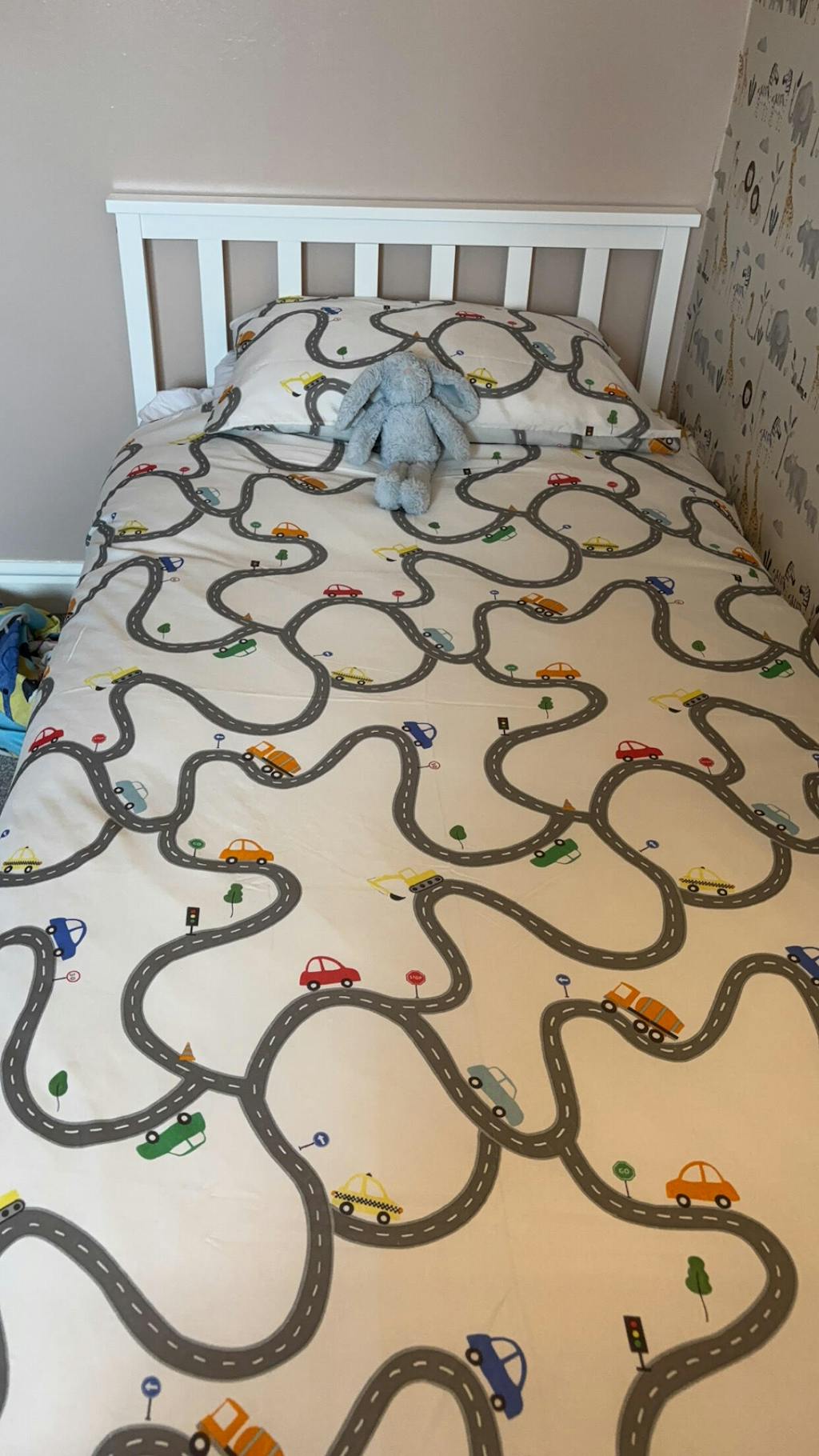 Featuring a simple silhouette and thoughtful detailing, this wooden single bed combines a classic slatted headboard and footboard in a modern frame. Built from solid wood with a smooth finish, it is designed for everyday use without visual heaviness. Its slatted base provides dependable mattress support, while the open area beneath the bed improves airflow and simplifies cleaning. You can select from a white or grey bed frame to easily match your interior