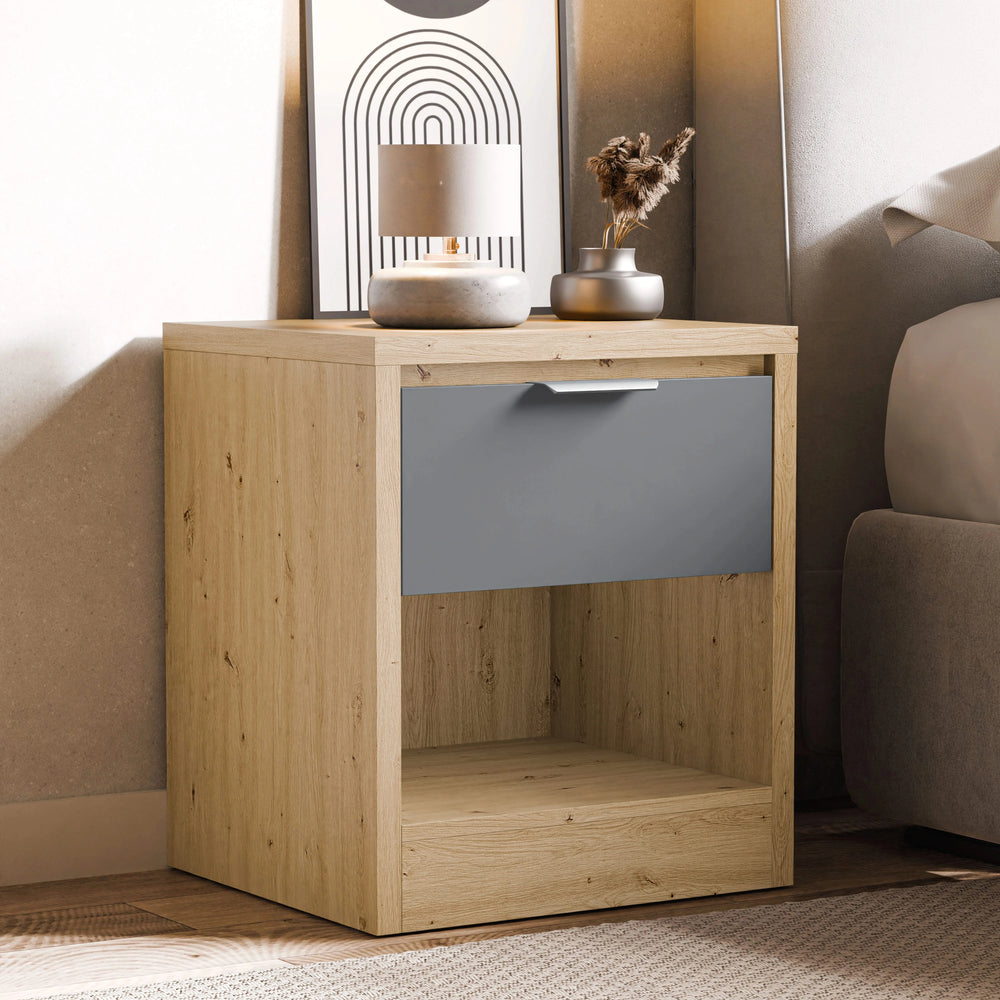![[Oak+Grey] Skova 4 Piece Bedroom Furniture Set bedside table with grey drawer and open shelf in oak finish, ideal for modern UK bedrooms.](http://dreamhomestore.co.uk/cdn/shop/files/grey-skova-bed-side-table.webp?v=1773478070&width=1214)