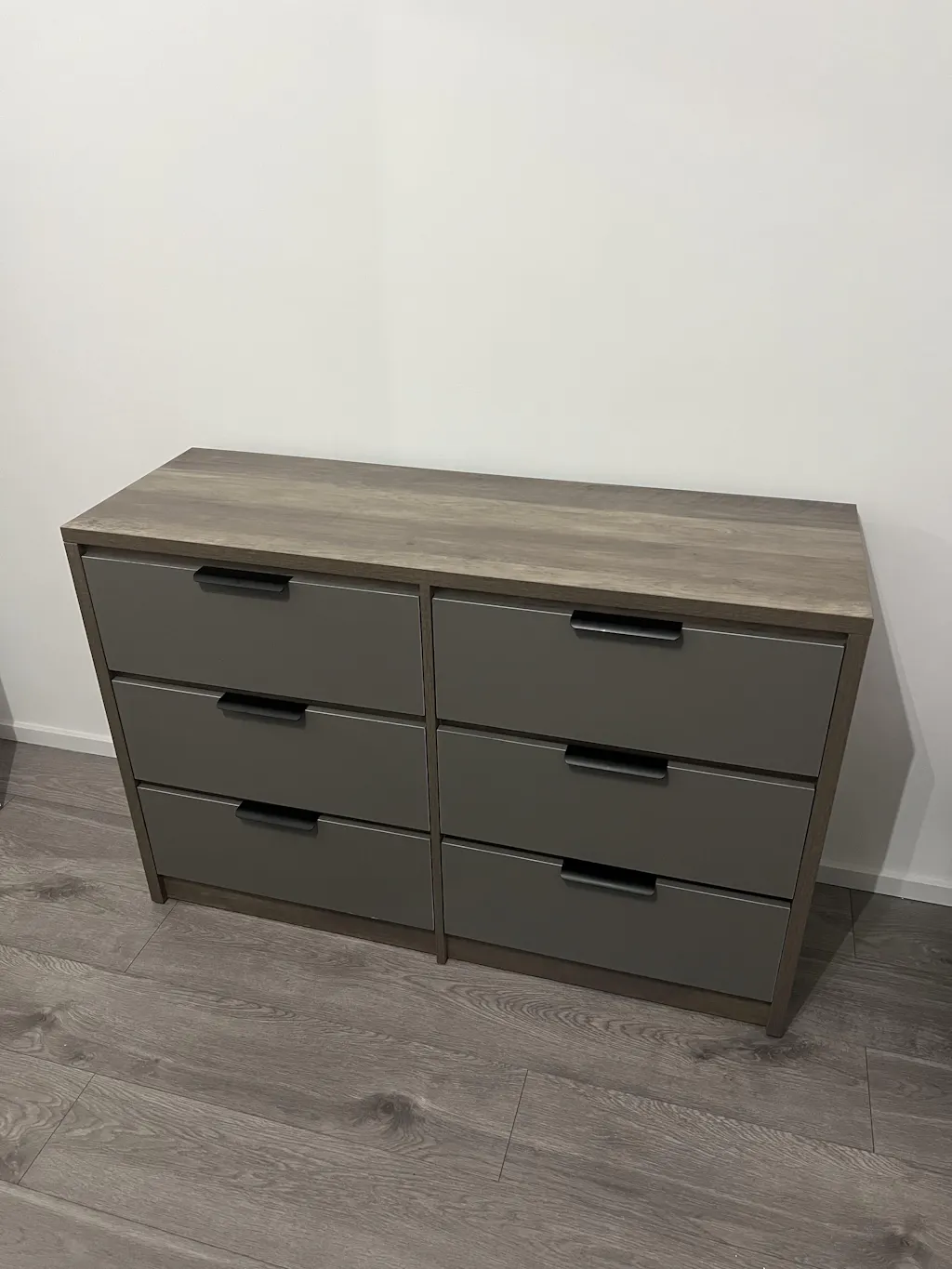 Designed with everyday use in mind, this 6-drawer chest provides reliable storage without taking up too much space. Its roomy drawers feature a smooth runner system, ensuring silent, effortless opening and closing. Crafted from reliable engineered wood and measuring 119 cm x 40 cm x 77.5 cm (W x D x H), it’s a perfect storage solution for bedrooms or hallways. Available in white, wooden grey, and grey finishes, so you can pick the look that fits your style.