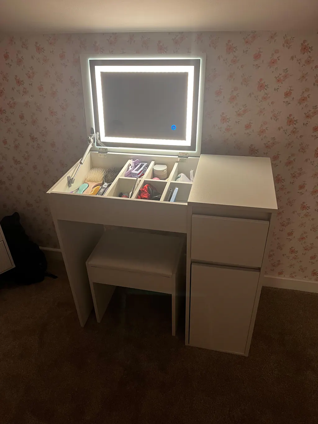 Make the most of your space with a flip-up dressing table with a mirror and lights!