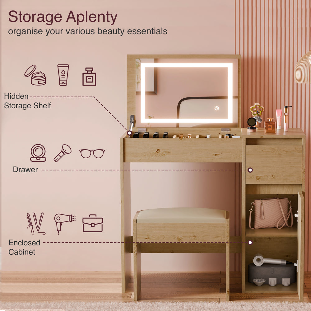 ![[Oak] Wooden vanity with mirror, drawers, and cabinet, featuring beauty products and a chair.](http://dreamhomestore.co.uk/cdn/shop/files/led-mirror-dressing-table.webp?v=1761904943&width=1214)