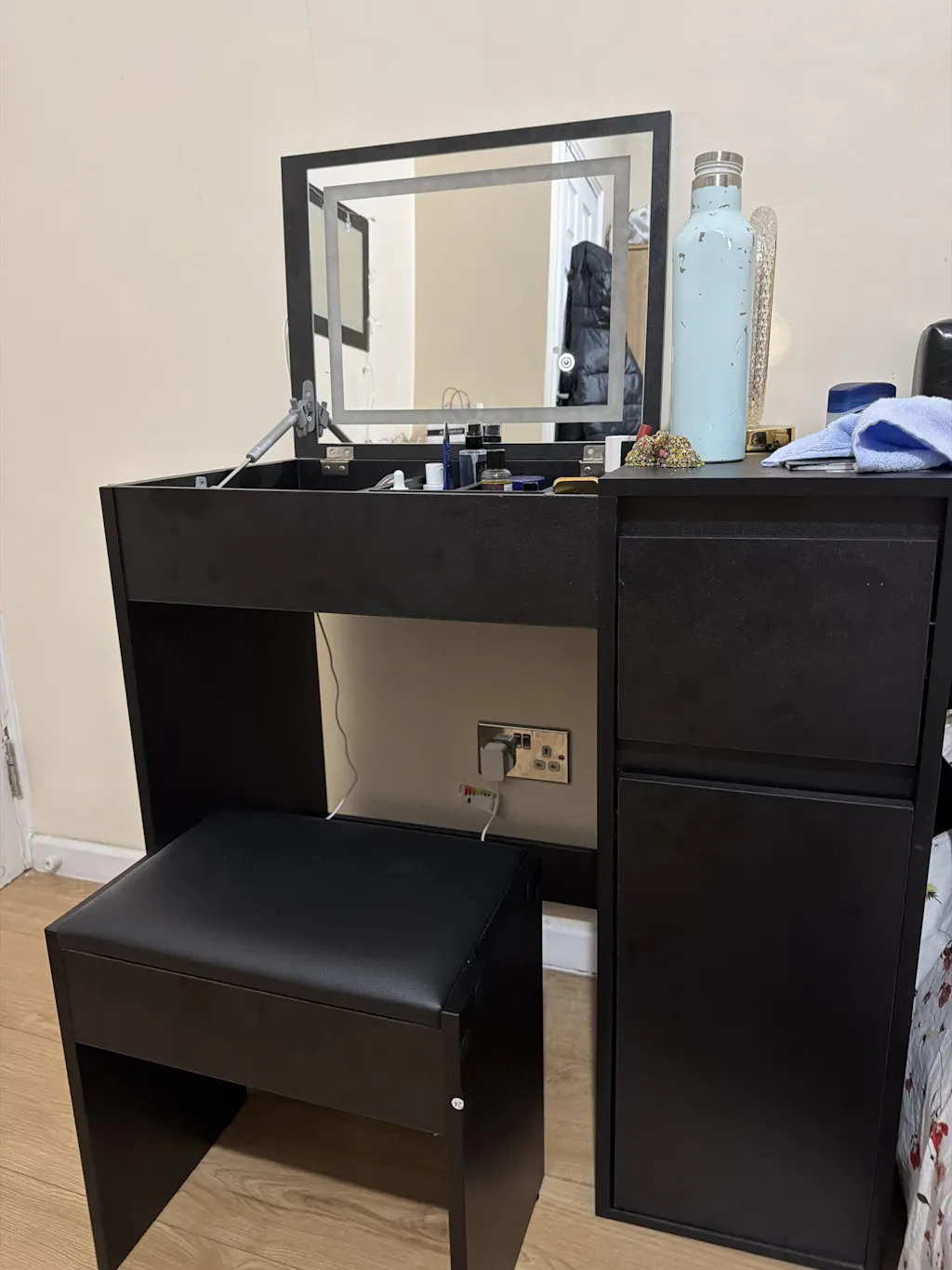 ![[Black] desk with laptop and small stool on one side, and makeup station with mirror and drawers on the other, in a room setting.](http://dreamhomestore.co.uk/cdn/shop/files/led-dressing-table-mirror.webp?v=1766132992&width=1214)