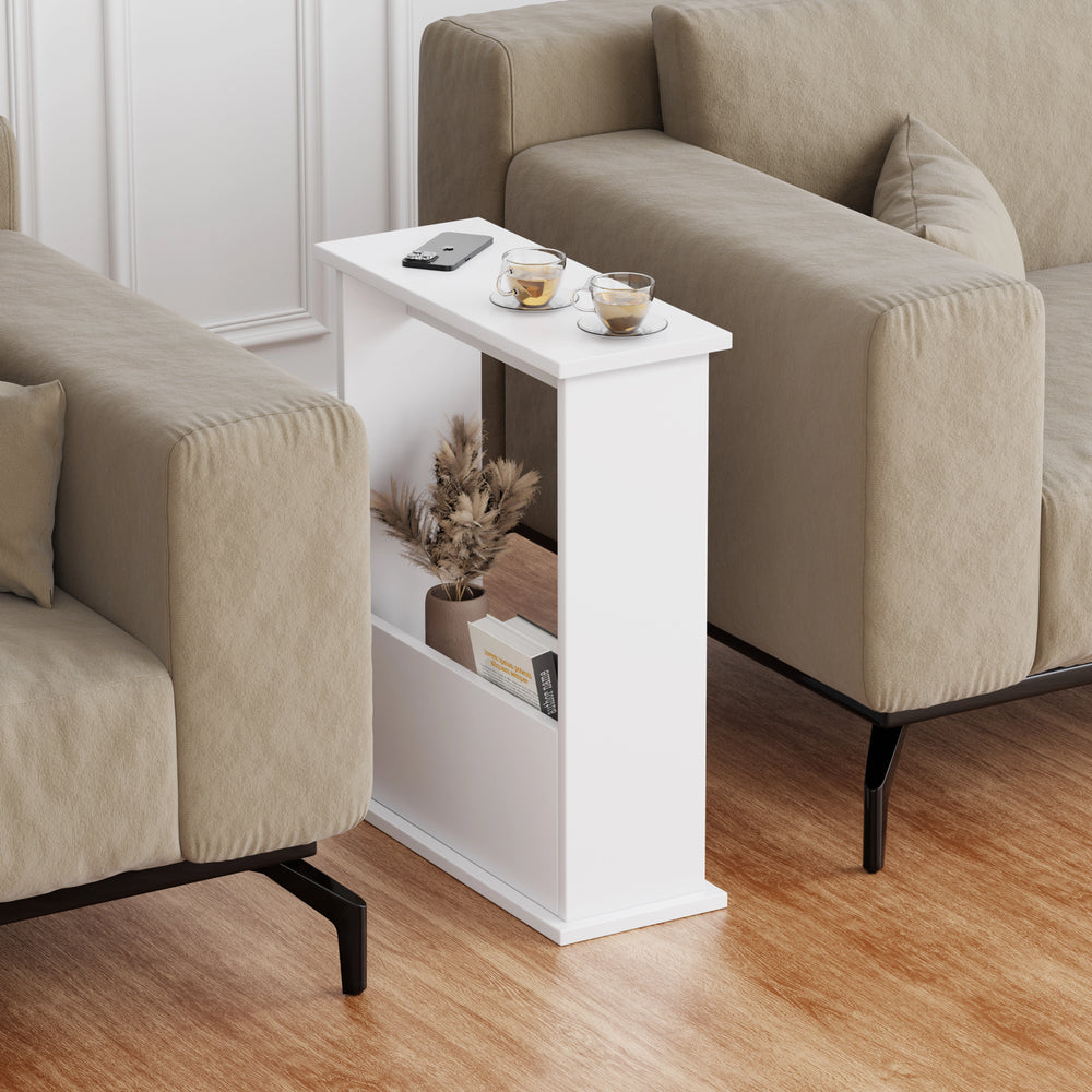 Small Narrow Side Table with Storage - Slim Sofa End Table