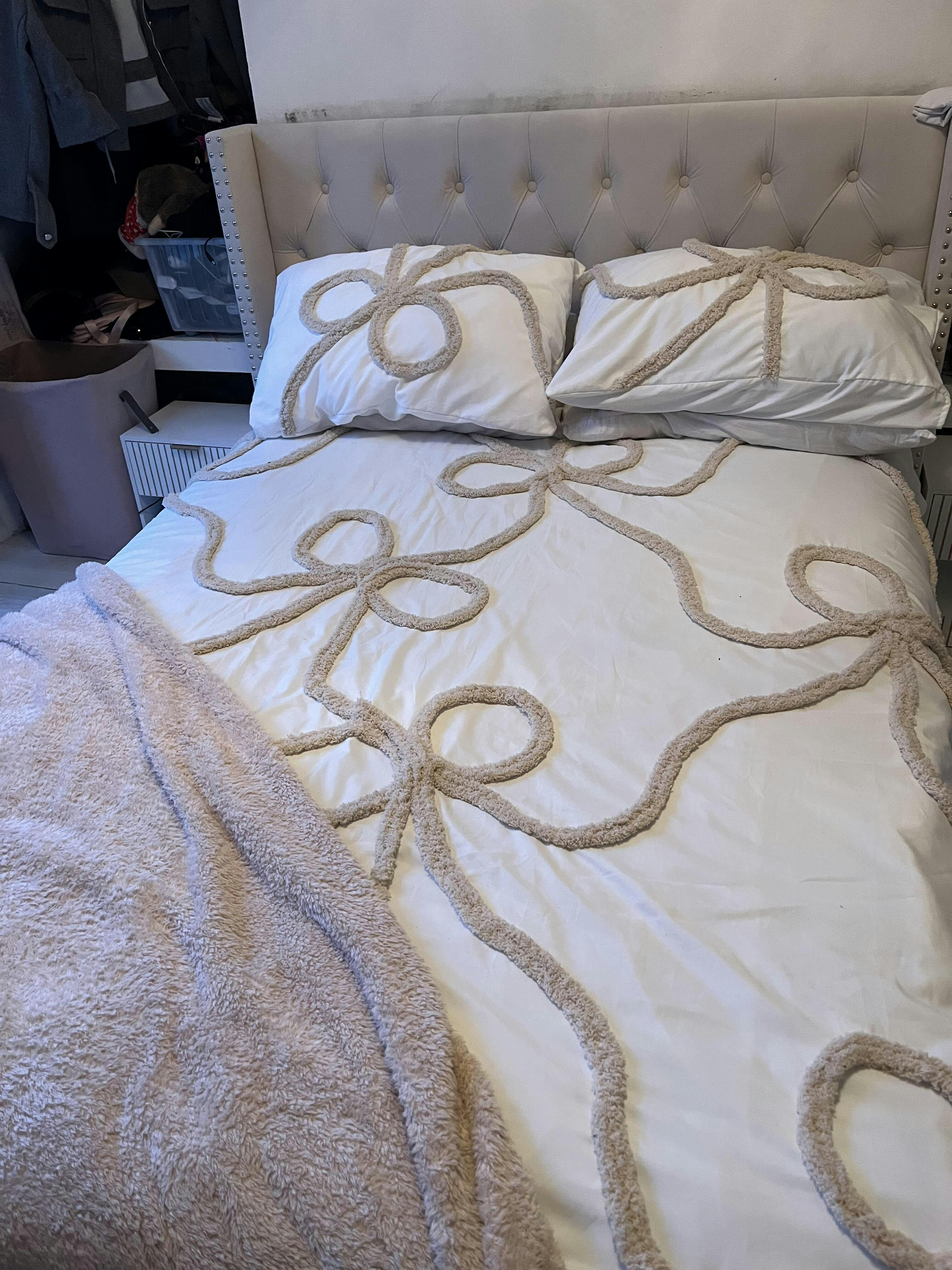 Rich button tufting with a diamond-like pattern on the headboard and footboard.
