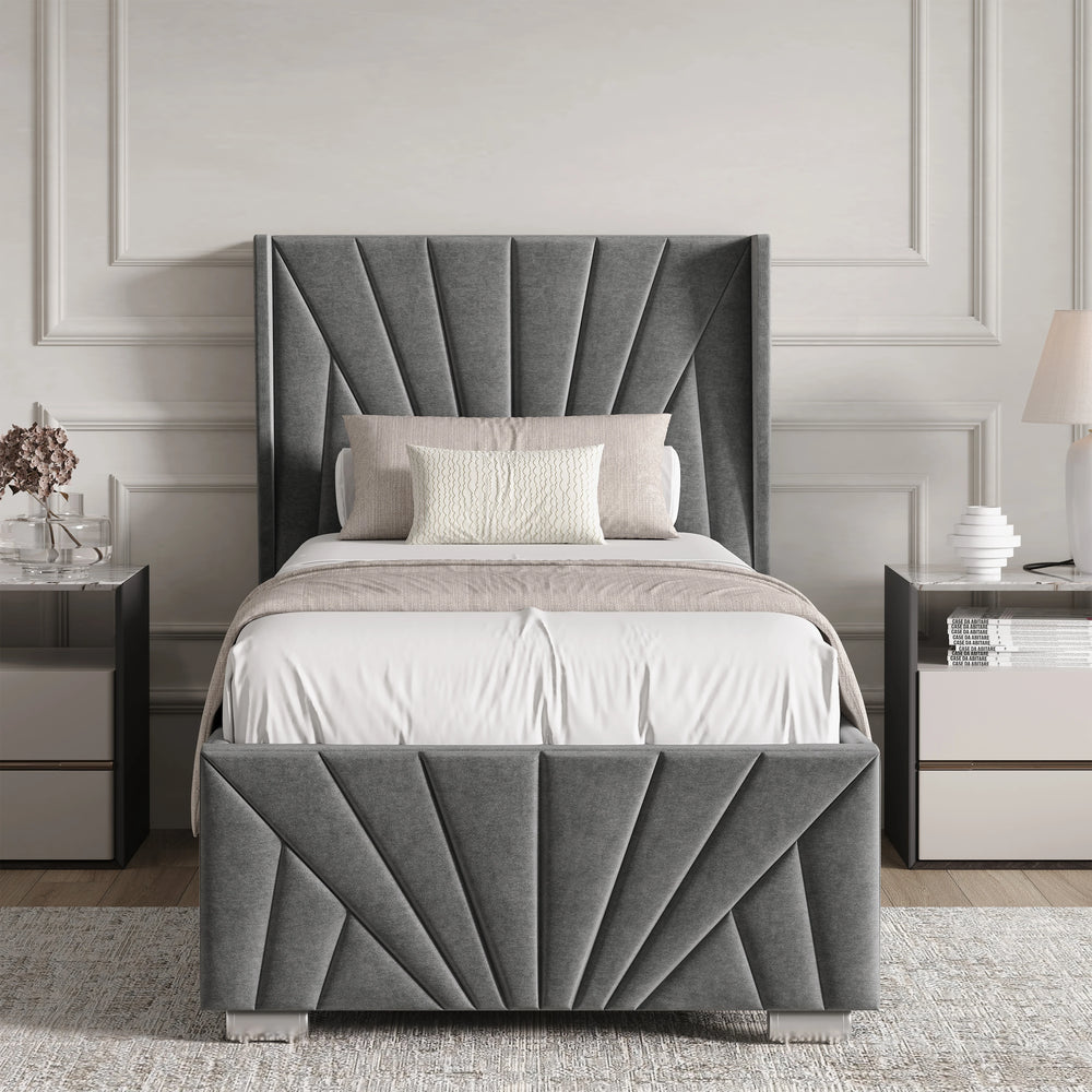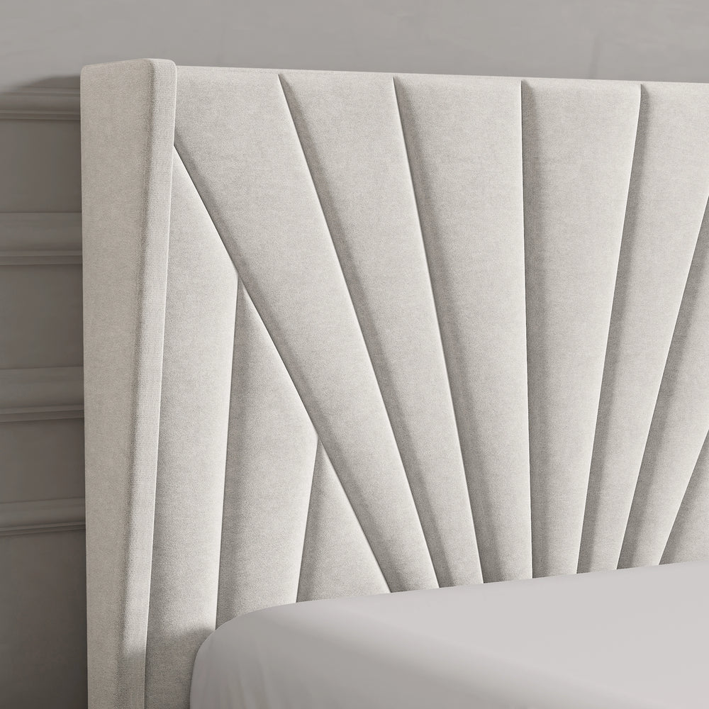 Elevated wingback headboard, adding depth to the design.