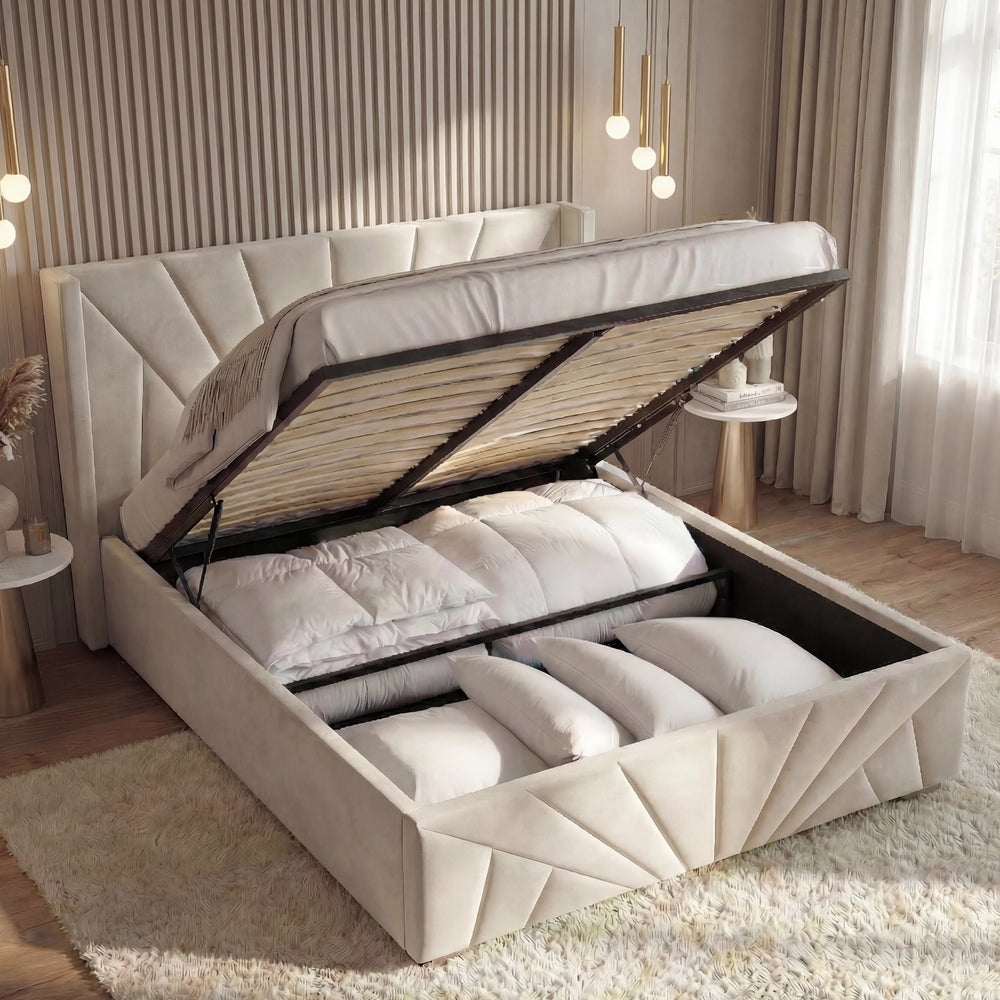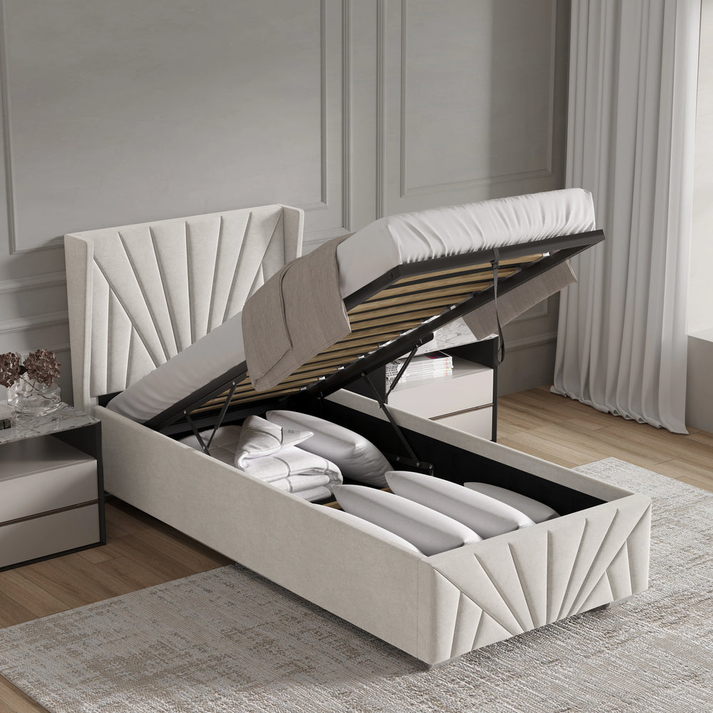 ![[Single | Beige] Velvet Ottoman Storage Bed | Sunrise Ottoman Bed Frame in beige single size with winged headboard and footboard](http://dreamhomestore.co.uk/cdn/shop/files/beige-sunrise-velvet-ottoman-bed-frame-with-storage.webp?v=1771855785&width=1214)