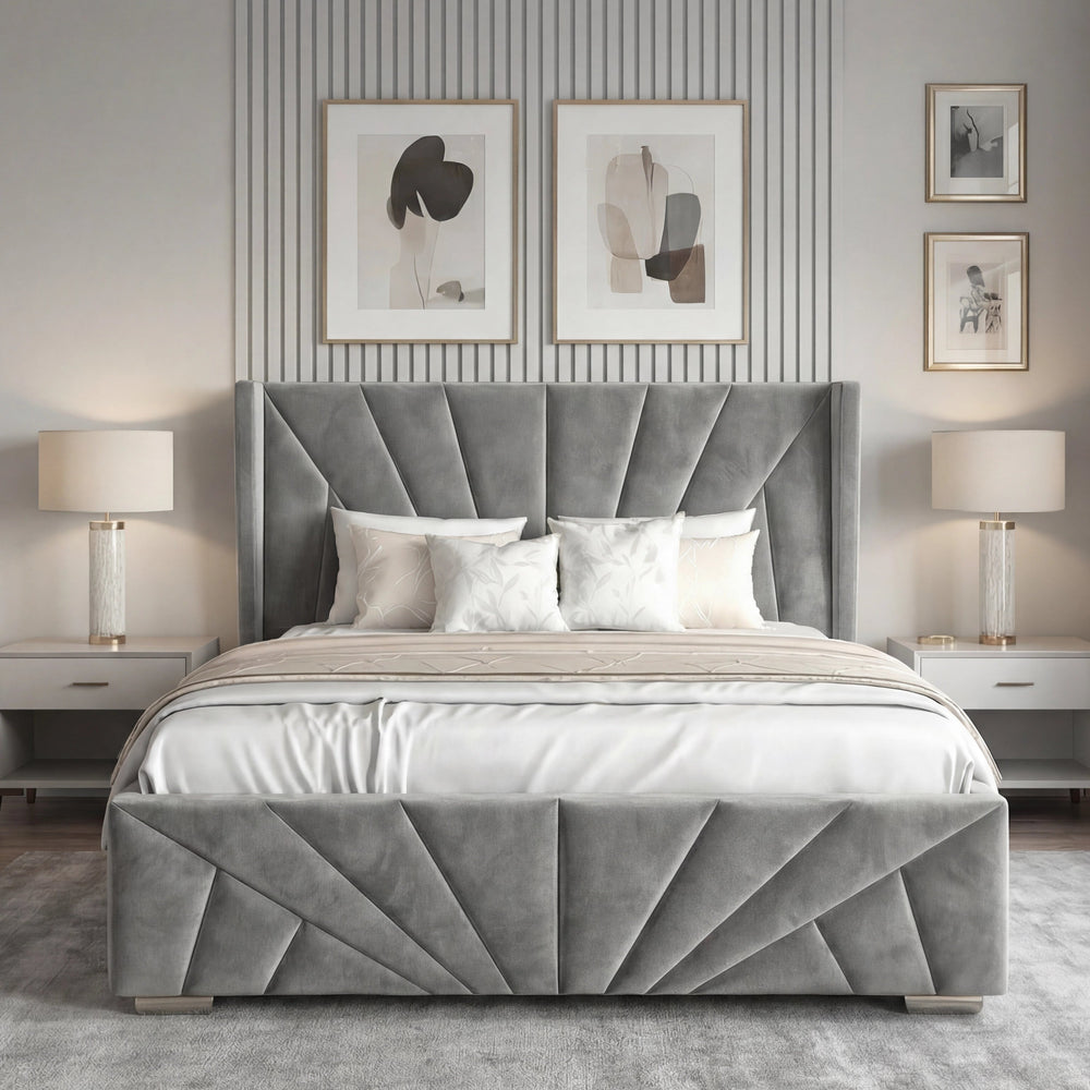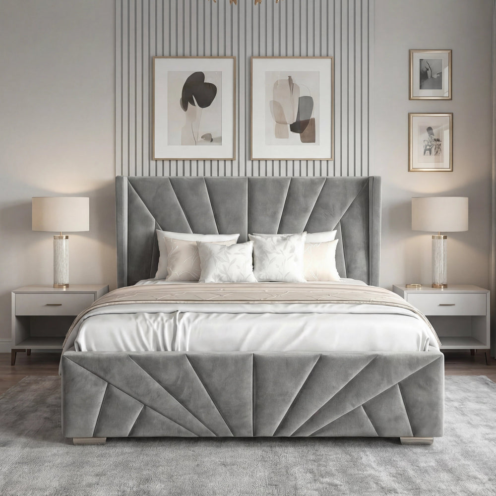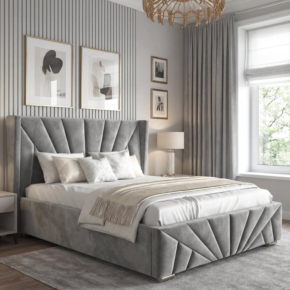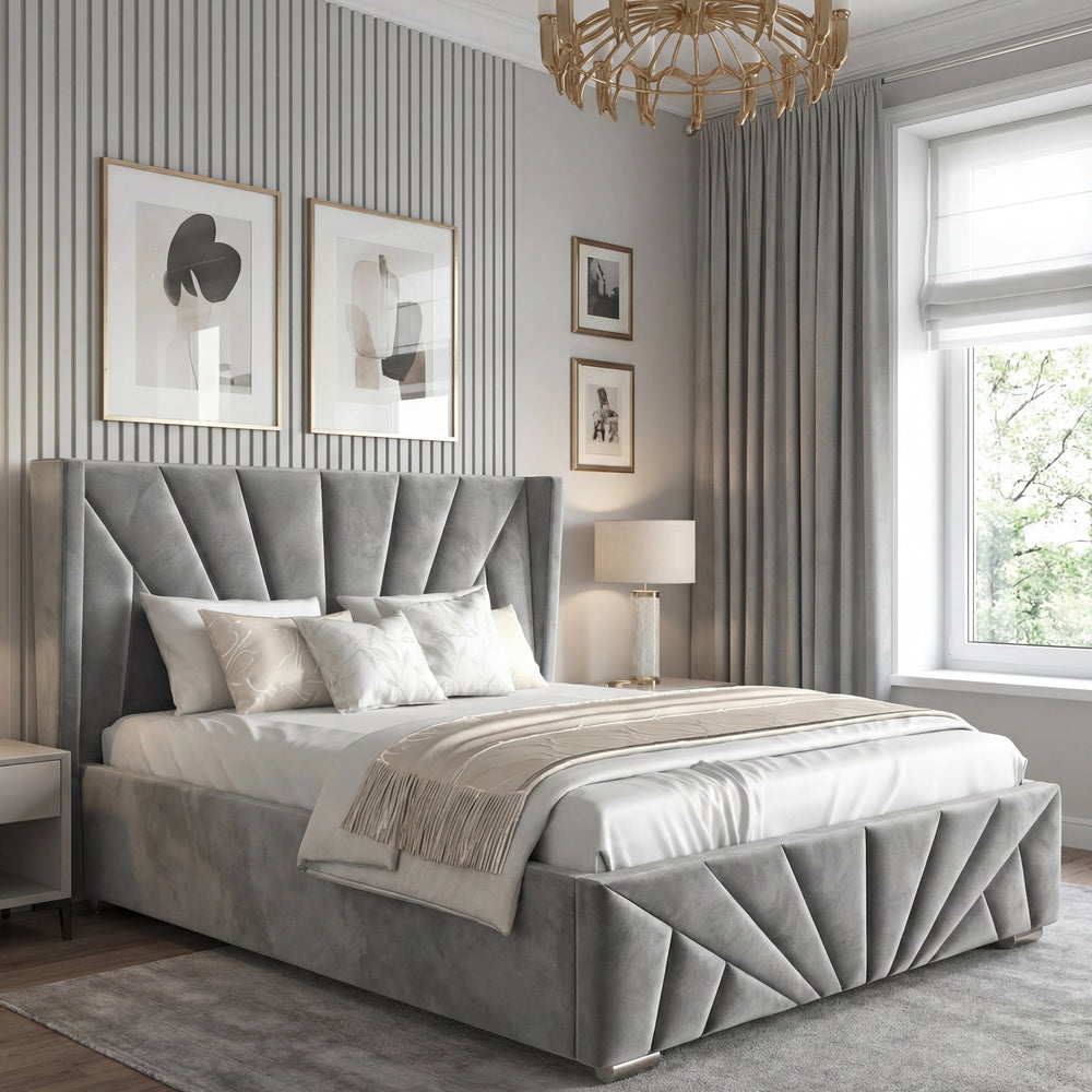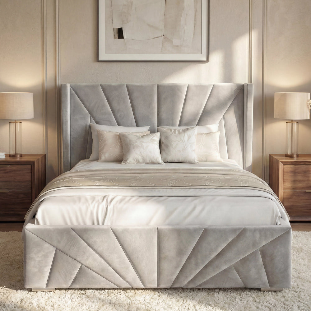 ![[Single | Grey] Sunrise-style Velvet Ottoman Bed Frame in grey with vertical panel tufting. Elegant headboard design adds luxury to this storage platform bed.](http://dreamhomestore.co.uk/cdn/shop/files/sunrise-velvet-ottoman-bed-frame.webp?v=1771855785&width=1214)