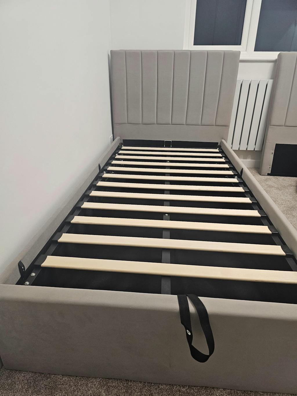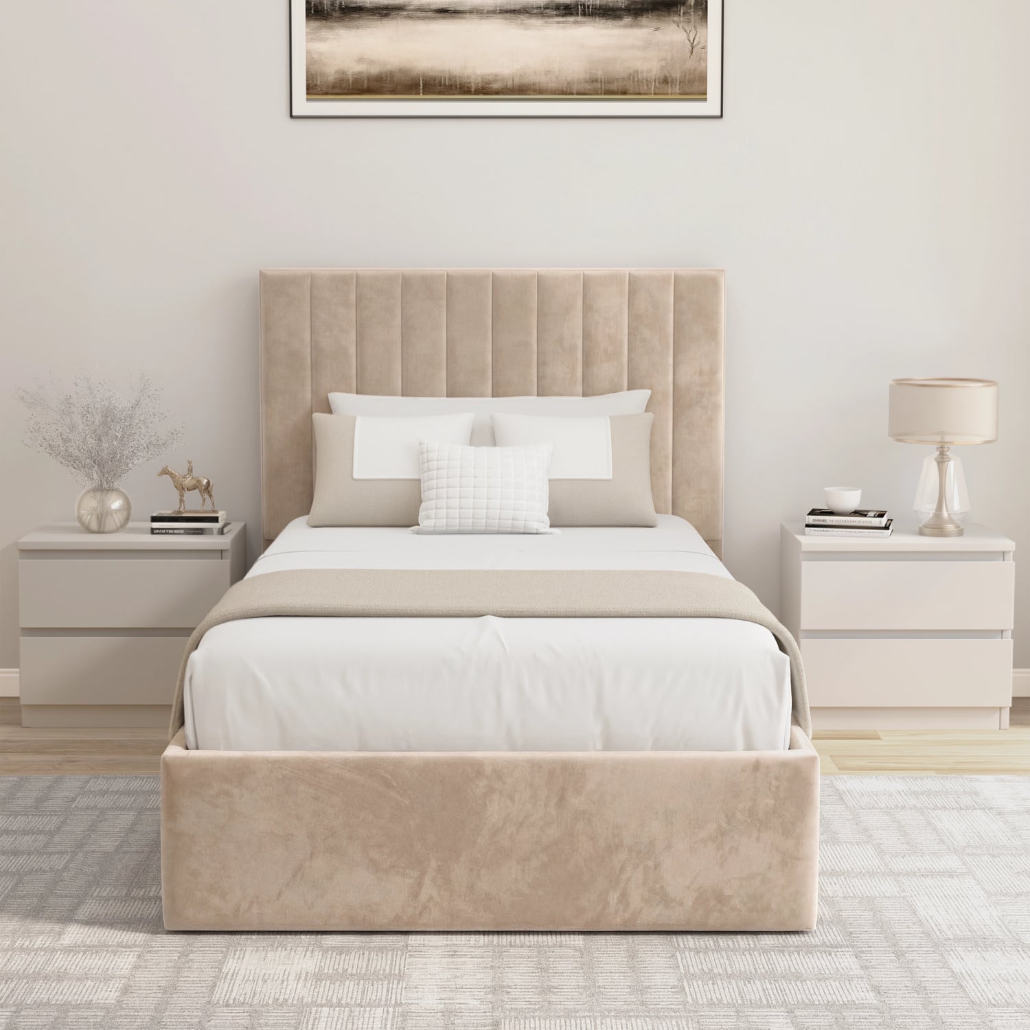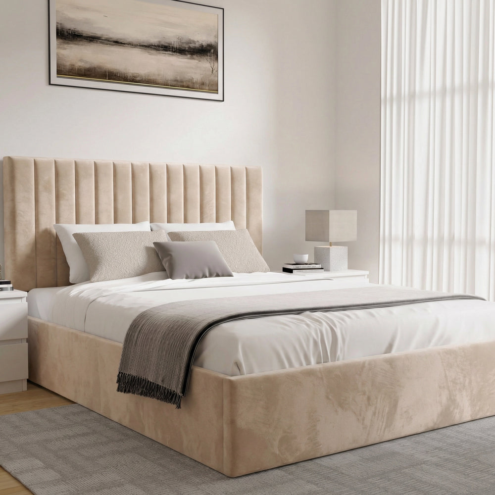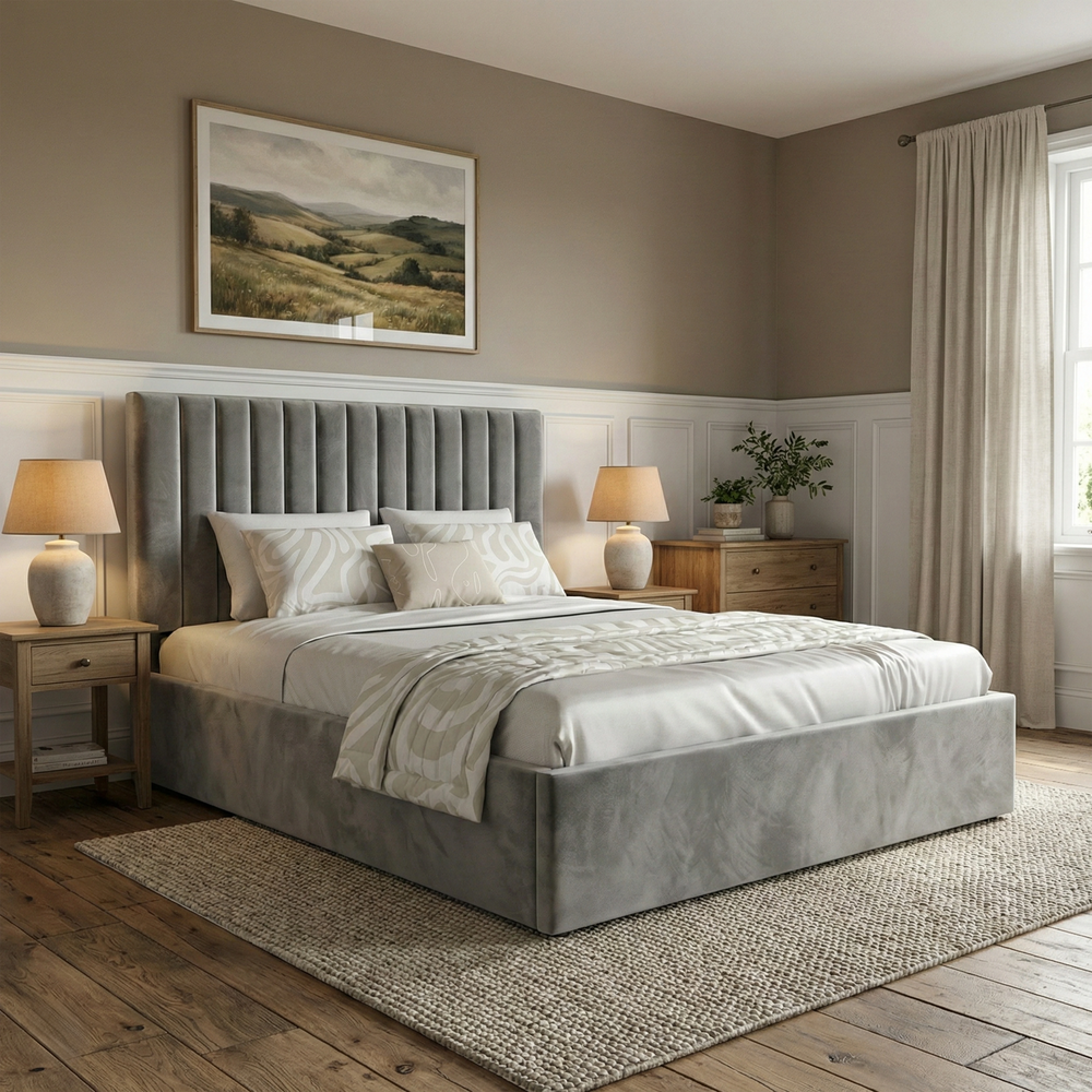 Modern Colour Choices: Available as a grey velvet ottoman bed, a light grey option, or a timeless beige bed frame.