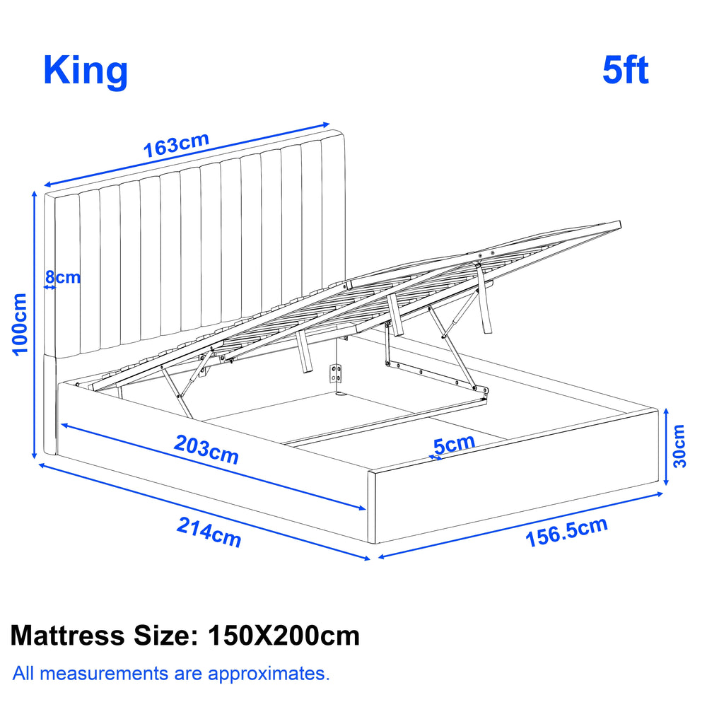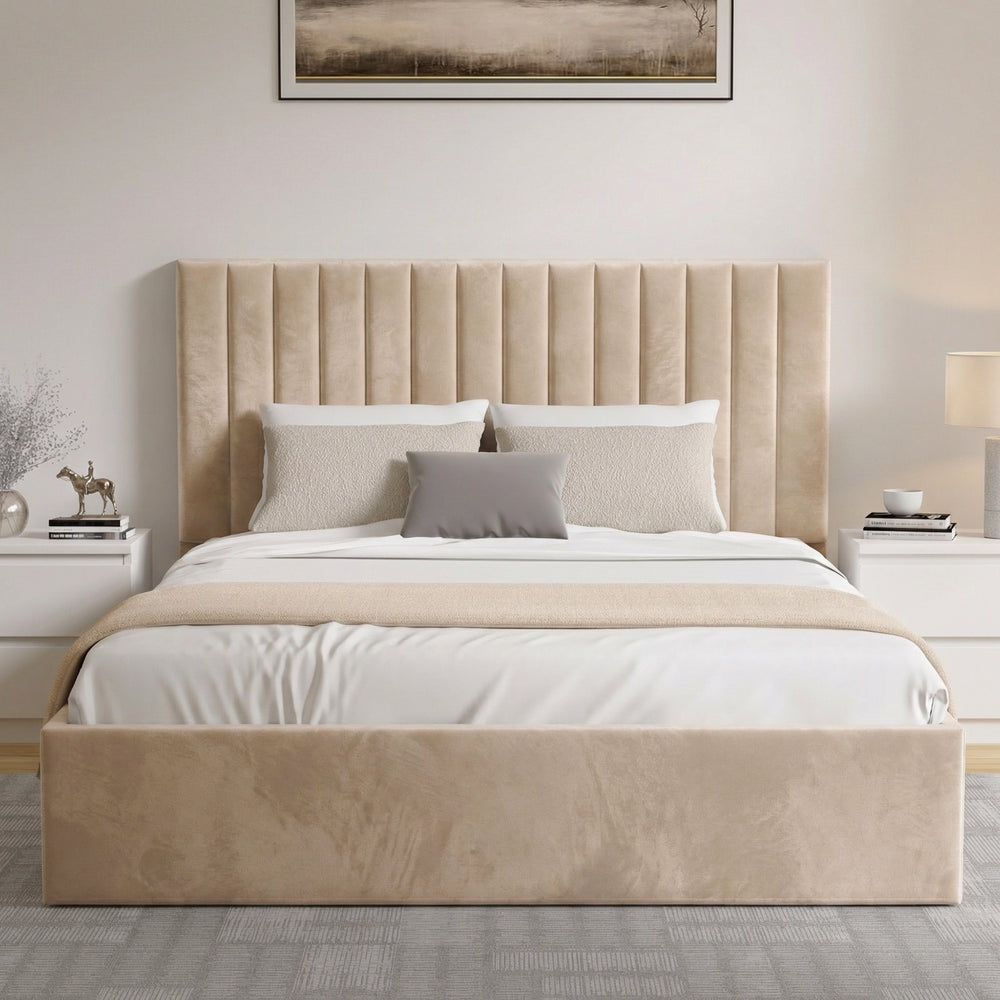 Vertical Line Ottoman Storage Bed - Velvet Ottoman Bed Frame