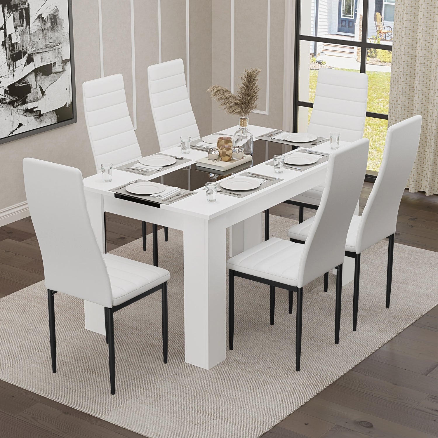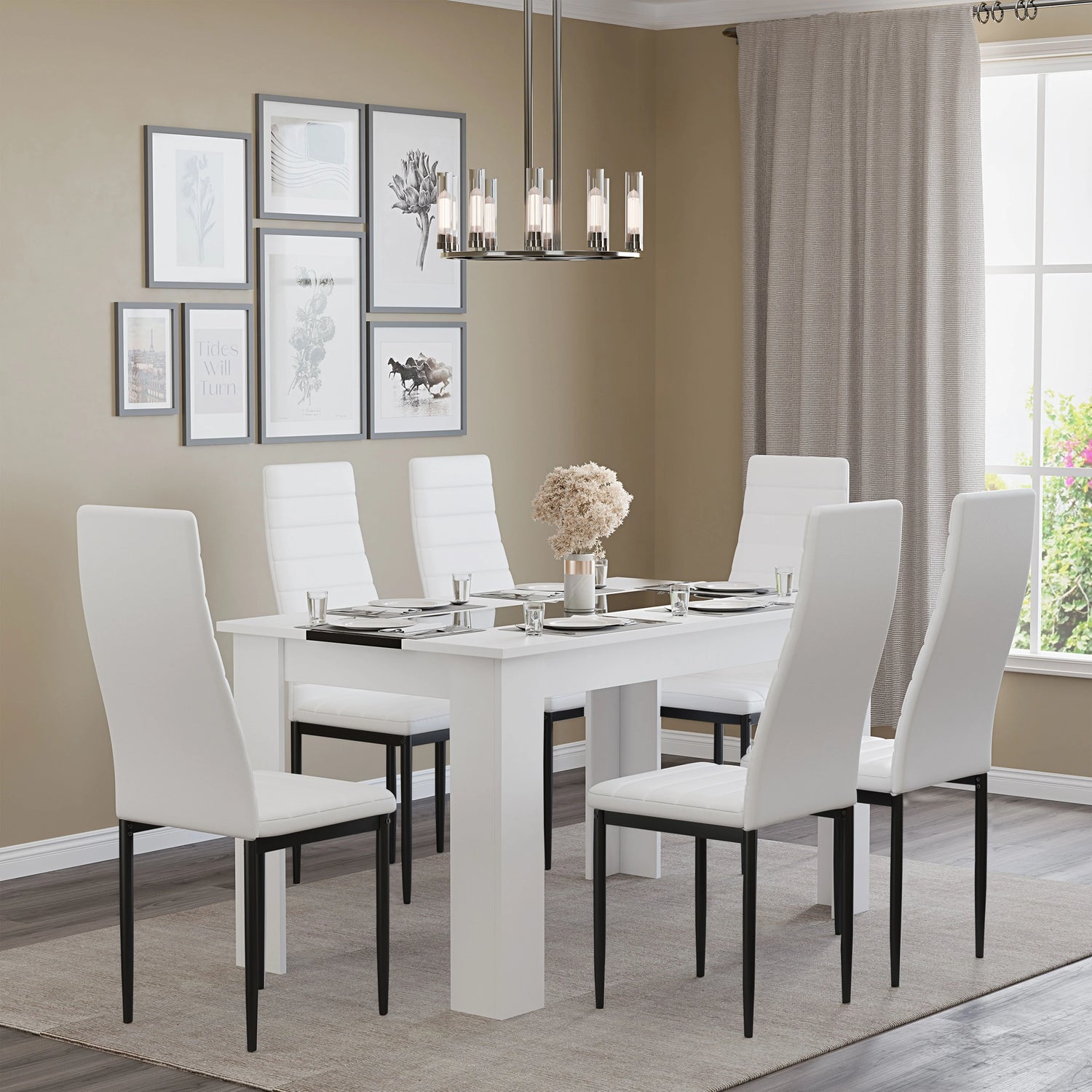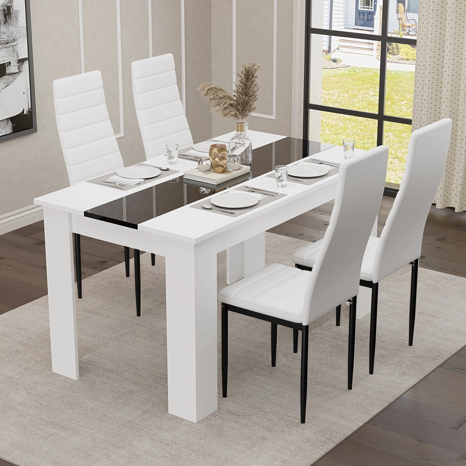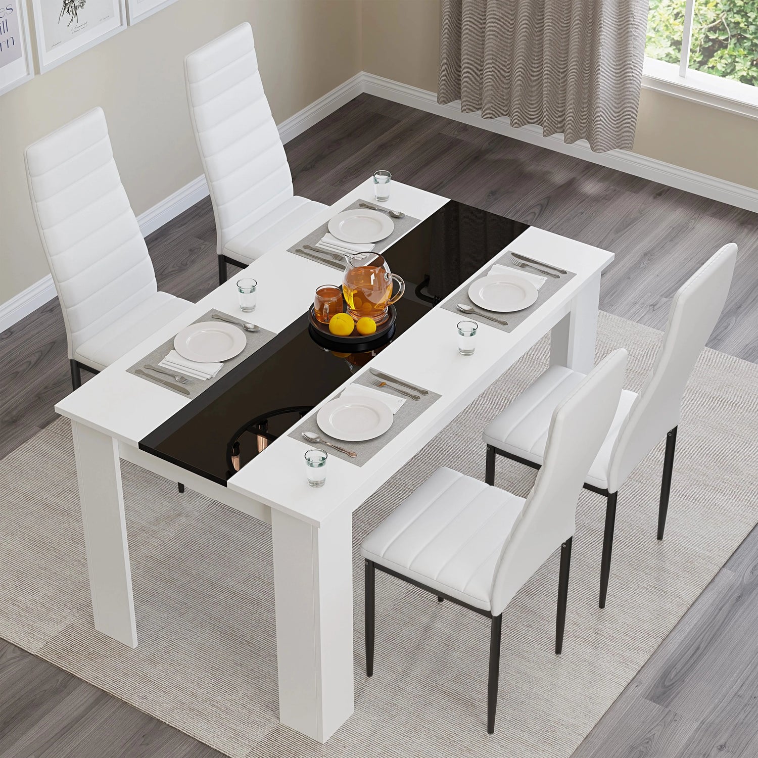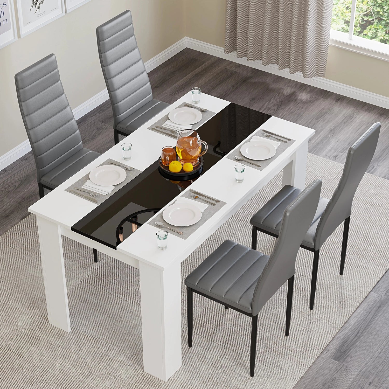 Thoughtfully crafted dining table set with 4 and 6 seats with a combination of sleek white and a reflective black finish, the perfect conversation starter at each of your dinners.