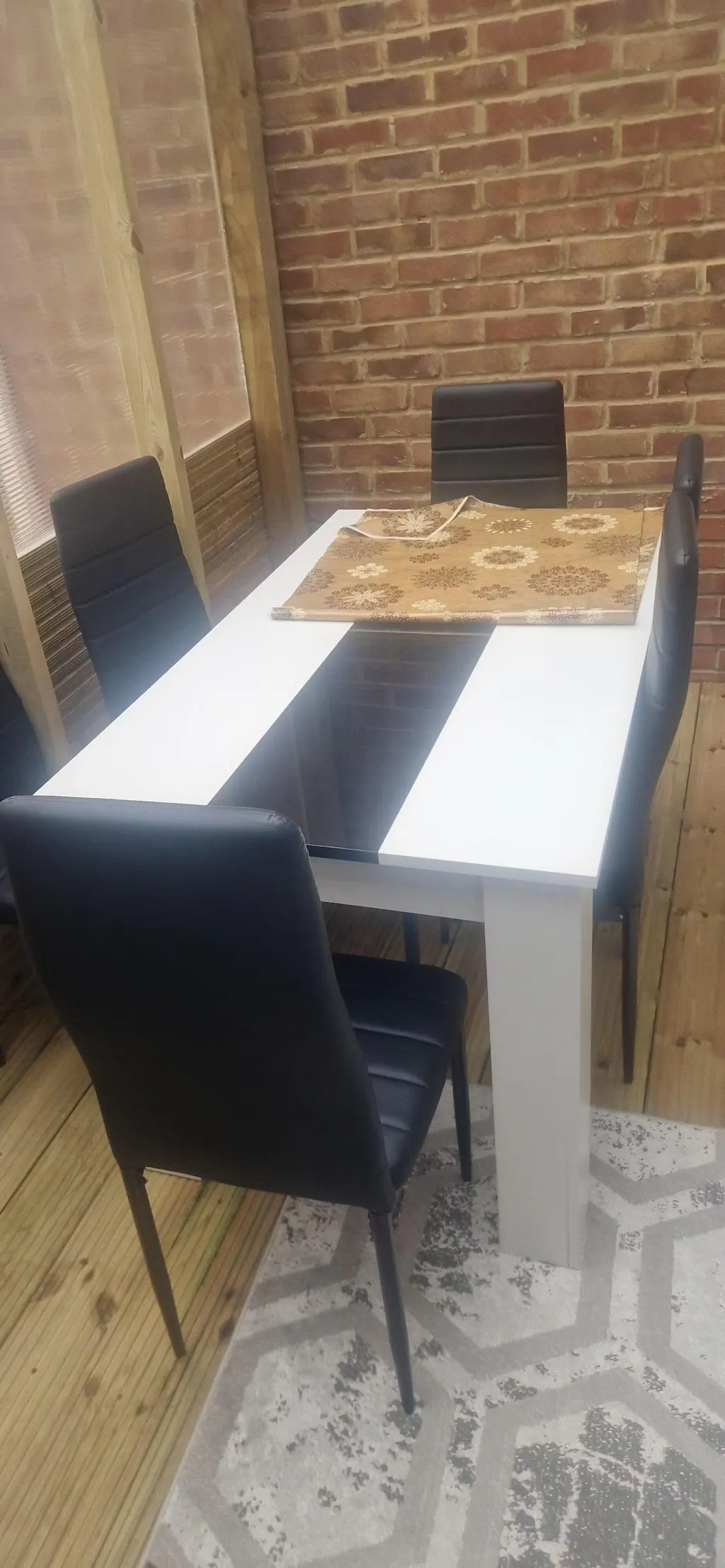 ![[4 Seater | Black] modern small dining table and 4 chairs set with white gloss and black strip, black PU leather seats](http://dreamhomestore.co.uk/cdn/shop/files/white-black-dining-table-with-4-black-chairs.webp?v=1771019138&width=1214)