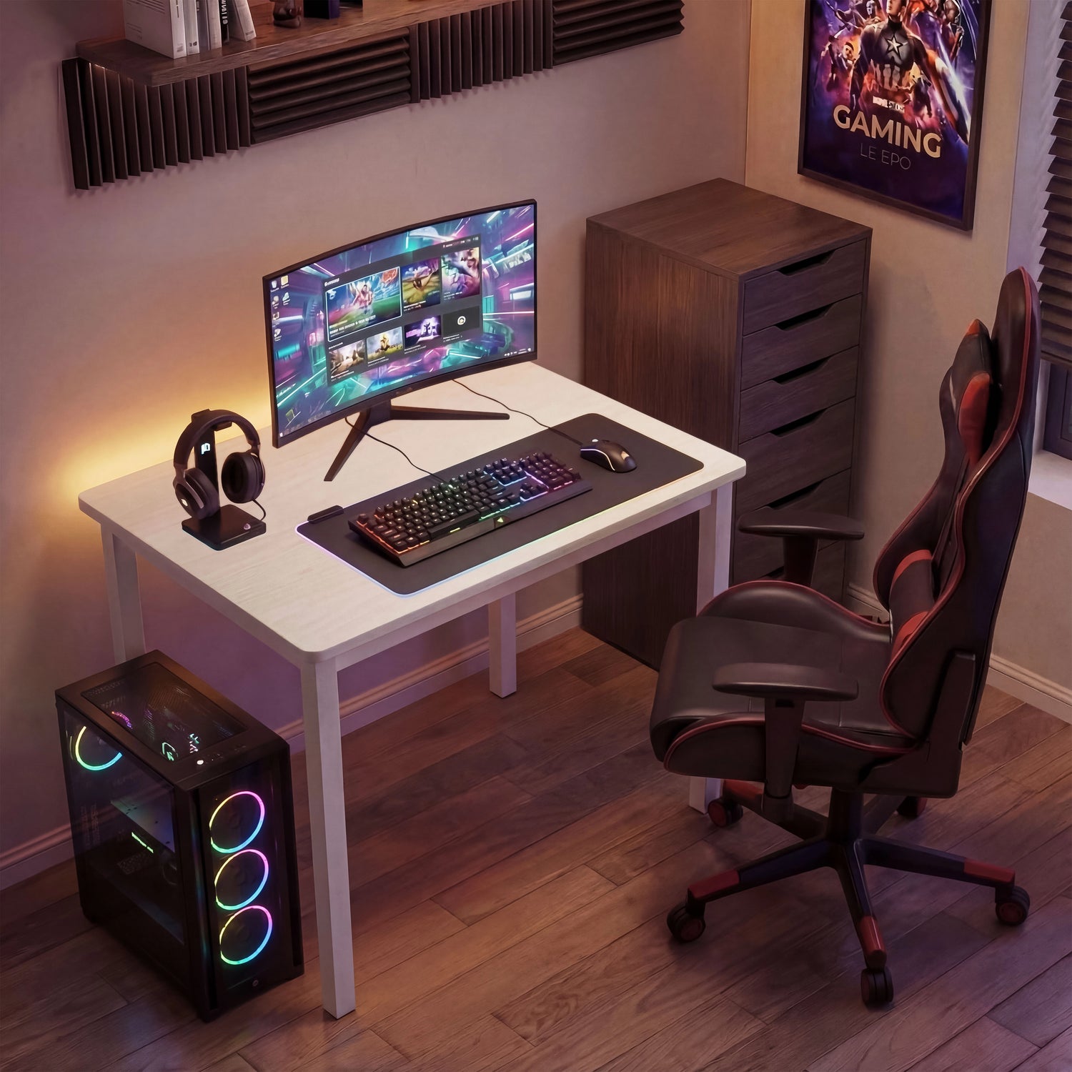 Minimal Modern Design: This gaming computer desk comes with clean edges and a timeless, minimal look that blends easily with modern interiors.