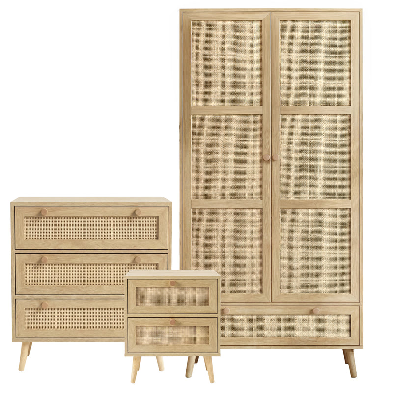 ![[Oak Effect] Wovena 3-piece bedroom set cutout showing wardrobe, three-drawer chest, and bedside table with rattan panels](http://dreamhomestore.co.uk/cdn/shop/files/oak-wovena-3-piece-bedroom-set-3-drawer-chest-cutout.webp?v=1775540575&width=1214)