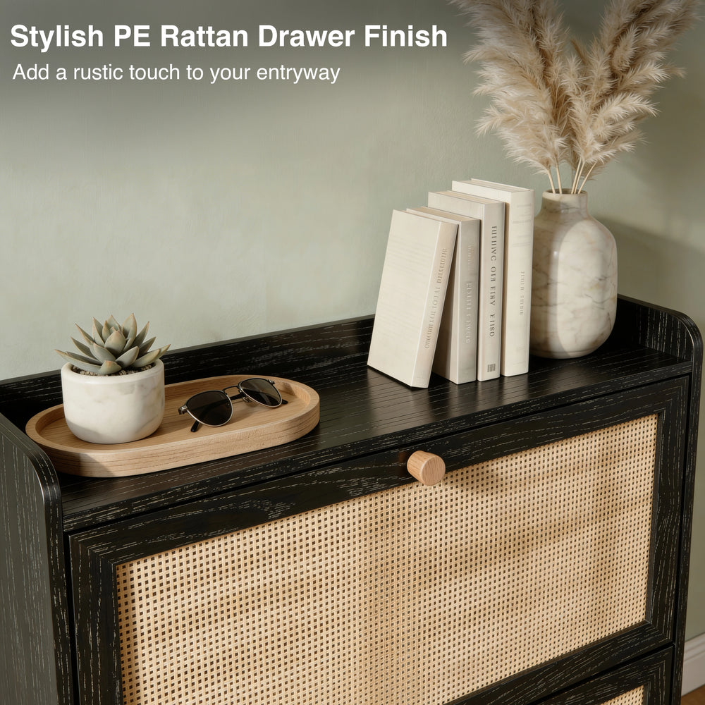 Wovena Rattan Black 2 Door Shoe Storage Cabinet Hallway